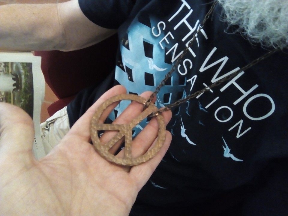 Im Foto unten bewundere ich sein bronzenes Peace-Zeichen vor dem Who-Shirt.